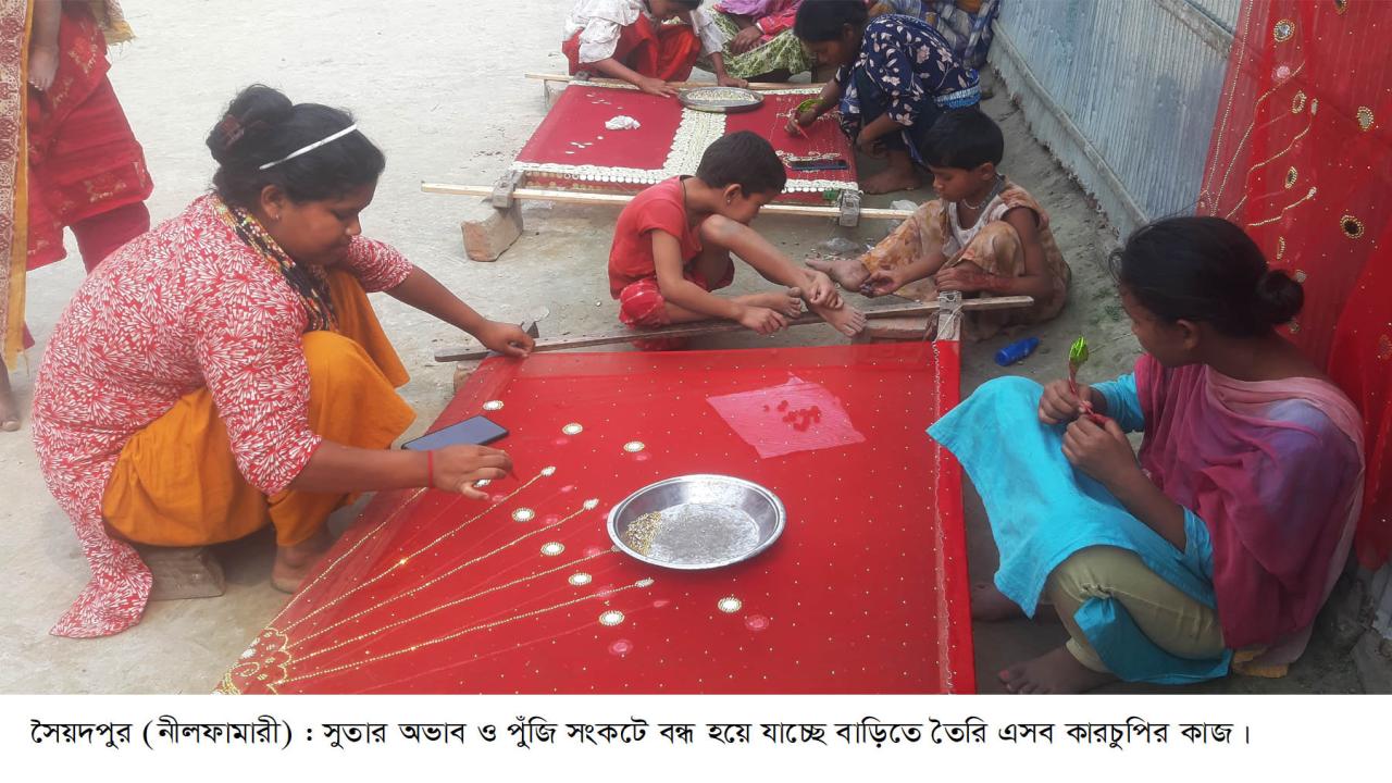 উত্তরের ব্যবসা-বাণিজ্য কেন্দ্র নীলফামারীর সৈয়দপুরে ক্ষুদ্র গার্মেন্টস ও কারচুপি শিল্প ভয়াবহ সংকটে পড়েছে। কাঁচামালের মূল্যবৃদ্ধি, পুঁজিসংকট এবং ভারতীয় রপ্তানি সীমাবদ্ধতার কারণে গত দুই বছরে অন্তত ২৫০টি কারখানা বন্ধ হয়ে গেছে। এতে কর্মহীন হয়ে পড়েছেন ১০ হাজারের বেশি শ্রমিক-কর্মচারী ও কারিগর।