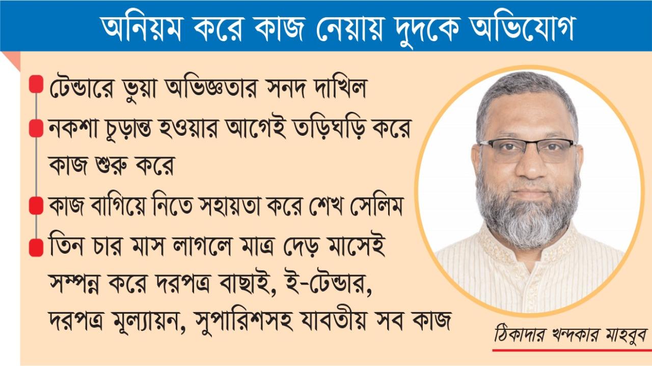 দরপত্র প্রকাশের আগের তারিখে নকশা অনুমোদনের দায়িত্ব পড়ে আনোয়ার হোসেন ও তত্ত্বাবধায়ক প্রকৌশলী রফিকুল ইসলামের উপর। পরবর্তীতে বিদ্বেষমূলক ঊর্ধ্বতনদের চাপে নকশা অনুমোদনে বাধ্য হয় প্রকল্প পরিচালক।