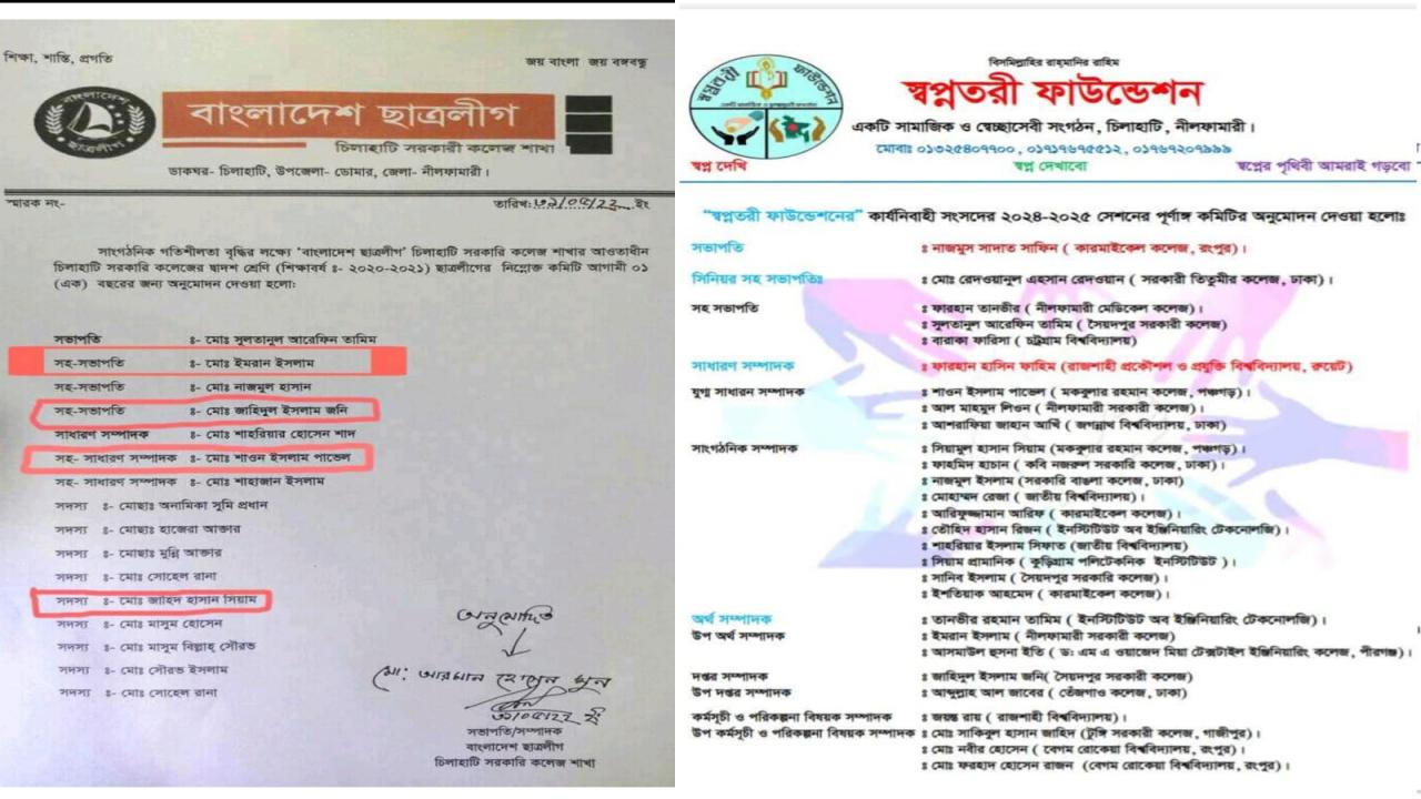 অভিযোগ রয়েছে, স্বপ্নতরী ফাউন্ডেশনের ১৬১ সদস্যের কমিটির অনেকেই ছাত্রলীগের সঙ্গে সম্পৃক্ত ছিলেন। তবে বিষয়টি প্রকাশ্যে আসার পর সংগঠনটির পক্ষ থেকে ওই কমিটি বিলুপ্ত ঘোষণা করা হয়েছে।