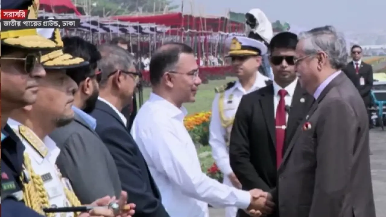 মহান স্বাধীনতা দিবস উপলক্ষে রাজধানীর পুরাতন বিমানবন্দরের জাতীয় প্যারেড স্কয়ারে রাষ্ট্রীয় মর্যাদায় কুচকাওয়াজ অনুষ্ঠিত হচ্ছে। বৃহস্পতিবার (২৬ মার্চ) সকাল সাড়ে ১০টার পর রাষ্ট্রপতি মো. সাহাবুদ্দিন প্যারেড গ্রাউন্ডে পৌঁছালে প্রধানমন্ত্রী তারেক রহমান তাকে আনুষ্ঠানিকভাবে অভ্যর্থনা জানান। পরবর্তীতে রাষ্ট্রপতি প্যারেড পরিদর্শন করেন এবং আনুষ্ঠানিকভাবে মার্চপাস্ট শুরু হয়।
