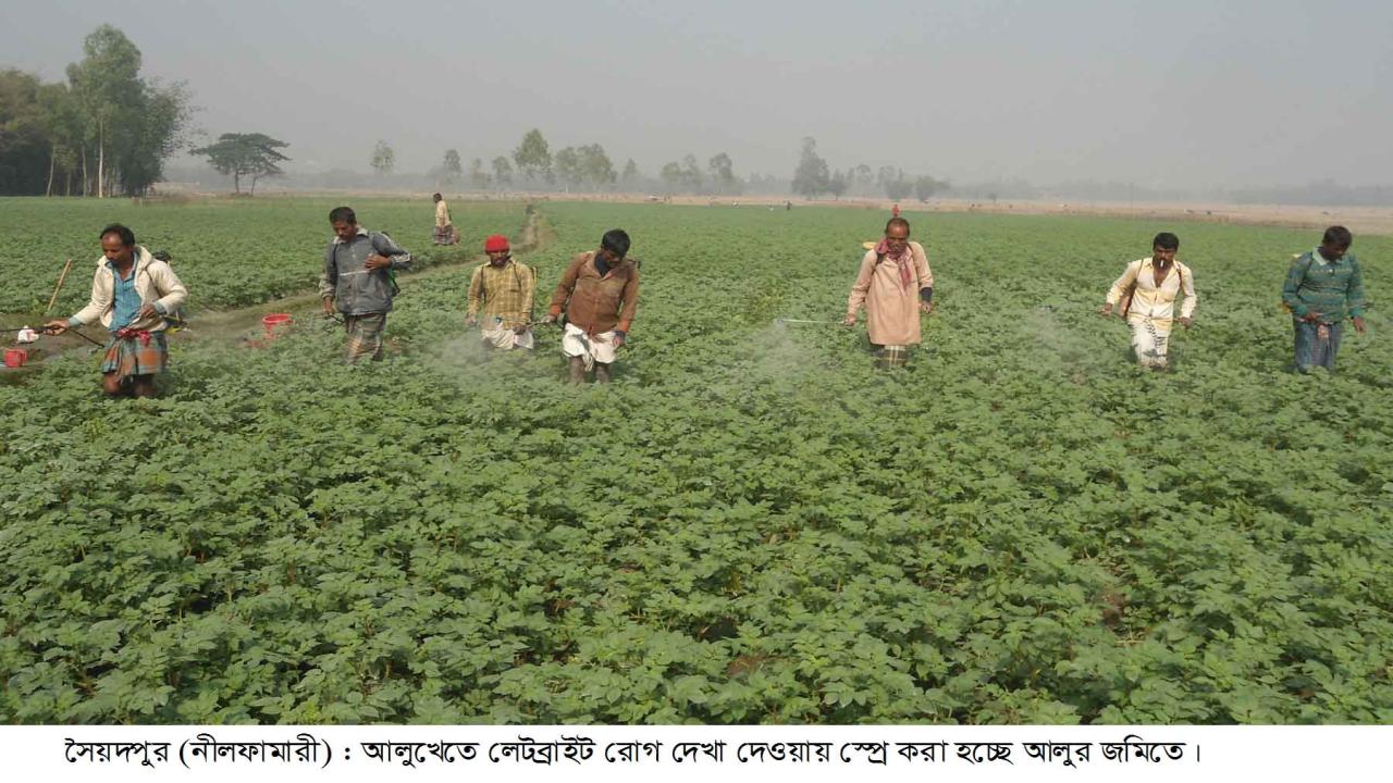 সৈয়দপুর উপজেলার পাঁচটি ইউনিয়নে লেটব্রাইট রোগের প্রাদুর্ভাব দেখা গেছে। কৃষকরা দোকানিদের পরামর্শে ছত্রাকনাশক প্রয়োগ করছেন। একই সঙ্গে শীত ও কুয়াশা থেকে রক্ষায় বোরো বীজতলা পলিথিন দিয়ে ঢেকে রাখা হয়েছে।