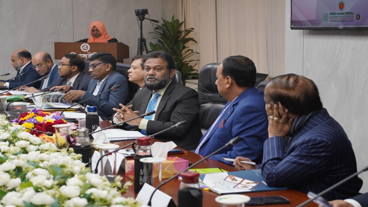 ইষ্টার্ন কেবলস্ লিমিটেড (ইসিএল) শনিবার (২৪ জানুয়ারি) সকাল ১১টায় হাইব্রিড পদ্ধতিতে ৩৯তম বার্ষিক সাধারণ সভা (এজিএম) আয়োজন করে। বিএসইসি সভাকক্ষে অনুষ্ঠিত সভায় প্রধান অতিথি ছিলেন বাংলাদেশ ইস্পাত ও প্রকৌশল করপোরেশন (বিএসইসি) এবং ইসিএলের চেয়ারম্যান জনাব মুঃ আনোয়ারুল আলম।