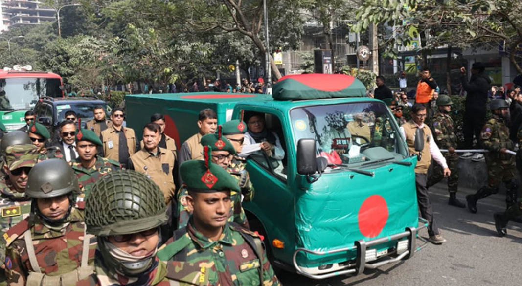 বুধবার (৩১ ডিসেম্বর) দুপুর ২টায় সংসদ ভবনের দক্ষিণ প্লাজার মাঠে জানাজা অনুষ্ঠিত হওয়ার কথা রয়েছে। এ উপলক্ষে সকাল থেকেই জানাজাস্থল ও আশপাশের এলাকায় বিপুলসংখ্যক আইন-শৃঙ্খলা রক্ষা বাহিনীর সদস্য মোতায়েন করা হয়েছে। প্রতিটি প্রবেশপথে বসানো হয়েছে বিশেষ চেকপোস্ট এবং তল্লাশি কার্যক্রম জোরদার করা হয়েছে।