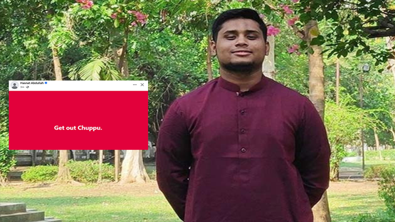 বৃহস্পতিবার (১২ মার্চ) বিকেল প্রায় ৪টার দিকে তিনি তার ব্যক্তিগত ফেসবুক অ্যাকাউন্টে ইংরেজিতে সংক্ষিপ্ত একটি স্ট্যাটাস দেন। সেখানে মাত্র তিনটি শব্দ লেখা ছিল—“Get out Chuppu”। পোস্টটি প্রকাশের পরপরই তা সামাজিক যোগাযোগমাধ্যমে দ্রুত ছড়িয়ে পড়ে এবং ব্যাপক আলোচনা-সমালোচনার জন্ম দেয়।