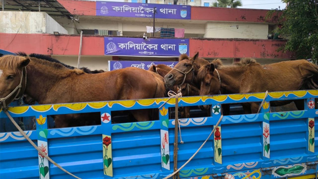 পুলিশ ও স্থানীয় সূত্রে জানা গেছে, ভোরে গোপন সংবাদের ভিত্তিতে খলিশাজানি এলাকায় সরকারি বনের পাশে একটি ট্রাক থেকে ৯টি ঘোড়া জব্দ ও পাঁচজনকে আটক করা হয়।