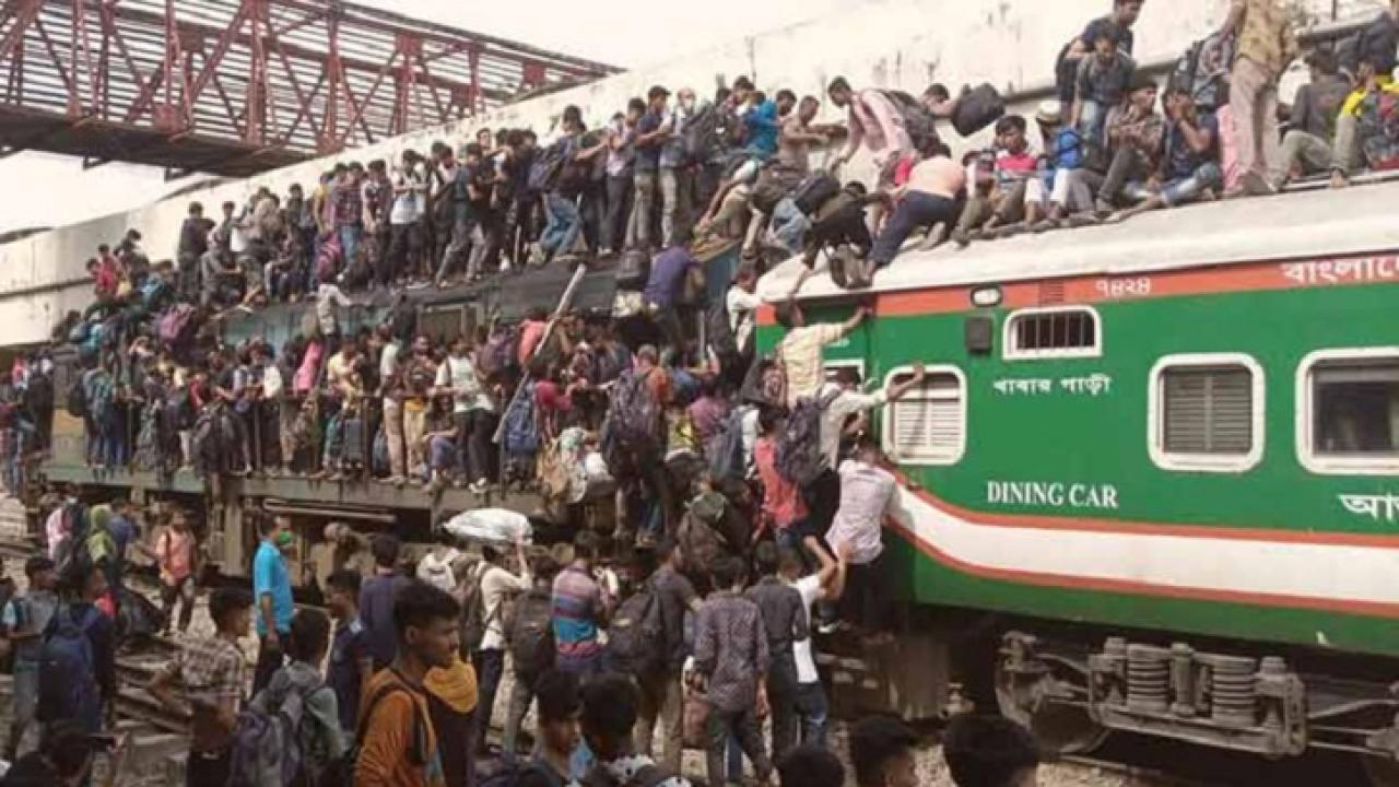 পরিবার-পরিজন ও প্রয়োজনীয় মালপত্রসহ যাত্রীরা ভোর থেকেই প্ল্যাটফর্মে জড়ো হতে শুরু করেন। অতিরিক্ত ভিড়ের কারণে অনেক যাত্রী ট্রেনের ভেতরে স্থান না পেয়ে জীবনের ঝুঁকি নিয়ে ছাদে উঠে গন্তব্যের উদ্দেশ্যে যাত্রা করছেন।