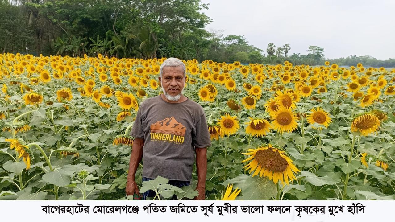 বাগেরহাট জেলার মোরেলগঞ্জ উপজেলার পঞ্চকরণ ইউনিয়নের খারইখালী গ্রামে এবার কৃষকের ঘরে ঘরে বইছে আনন্দের ঢেউ। পতিত জমিতে সূর্যমুখী চাষের মাধ্যমে প্রান্তিক কৃষকরা স্বল্প সময়ে বেশি লাভবান হচ্ছেন। মাত্র ৩৩ শতক প্রতি বিঘা জমিতে ৭–৮ মন সূর্যমুখী ফলন পাচ্ছেন তারা। প্রতিটি মন থেকে ১৩ কেজি তেল উৎপাদন হচ্ছে, যার বাজার মূল্য প্রতি কেজি ৩০০–৩৫০ টাকা।