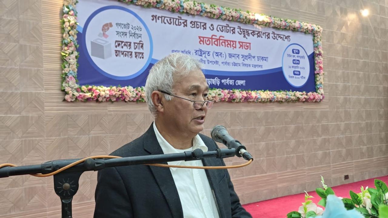শুক্রবার (১৬ জানুয়ারি) বিকেলে খাগড়াছড়ি পৌর টাউন হল সম্মেলন কক্ষে খাগড়াছড়ি জেলা প্রশাসনের গণভোটের প্রচার ও ভোটার উদ্বুদ্ধকরণে মতবিনিময় সভায় প্রধান অতিথির বক্তব্যে তিনি এ কথা বলেন।